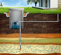 Если зеркало воды на вашем участке превышает 9 метров, то для подачи воды необходимо применять погружное насосное оборудование. Для этого необходимо бурить скважину с обсадной трубой. Пластиковая обсадная труба с фильтром на конце устанавливается в пещанный водоносный горизонт. Цена от 1500 рублей за метр.